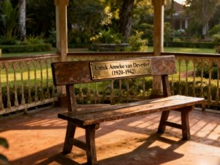 Sebuah bangku di paviliun memuat plakat perunggu. Ukiran di atasnya membaca: “Untuk Anneke van Deventer (1920-1942) – yang cintanya menjadi tragedi, dan tragedinya menjadi legenda.”